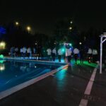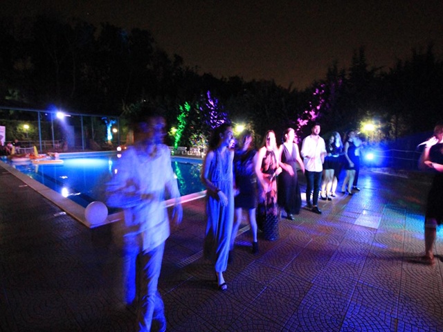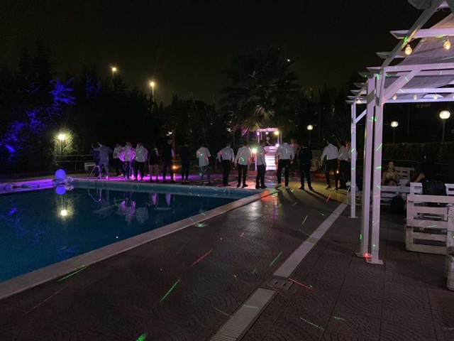 Tra le luci all’ultimo grido che si riflettono sull’acqua e musiche moderne di tendenza, si intravedono non solo banchetti allestiti con leccornie di ogni specie, ma anche tavoli e sedute e la scintillante postazione dj.