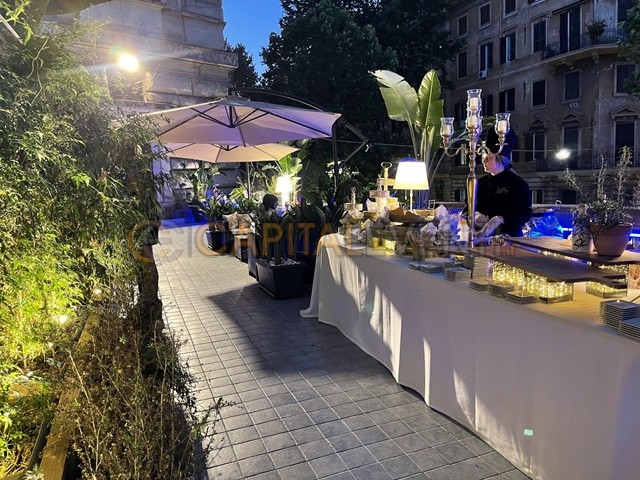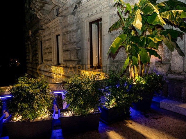 Si può scegliere la sala che si preferisce o magari optare per gli esterni della proprietà dove una rigogliosa vegetazione accoglie gli invitati tra alberi di alto fusto, fiori e siepi come se fosse un’oasi radiosa del centro storico.